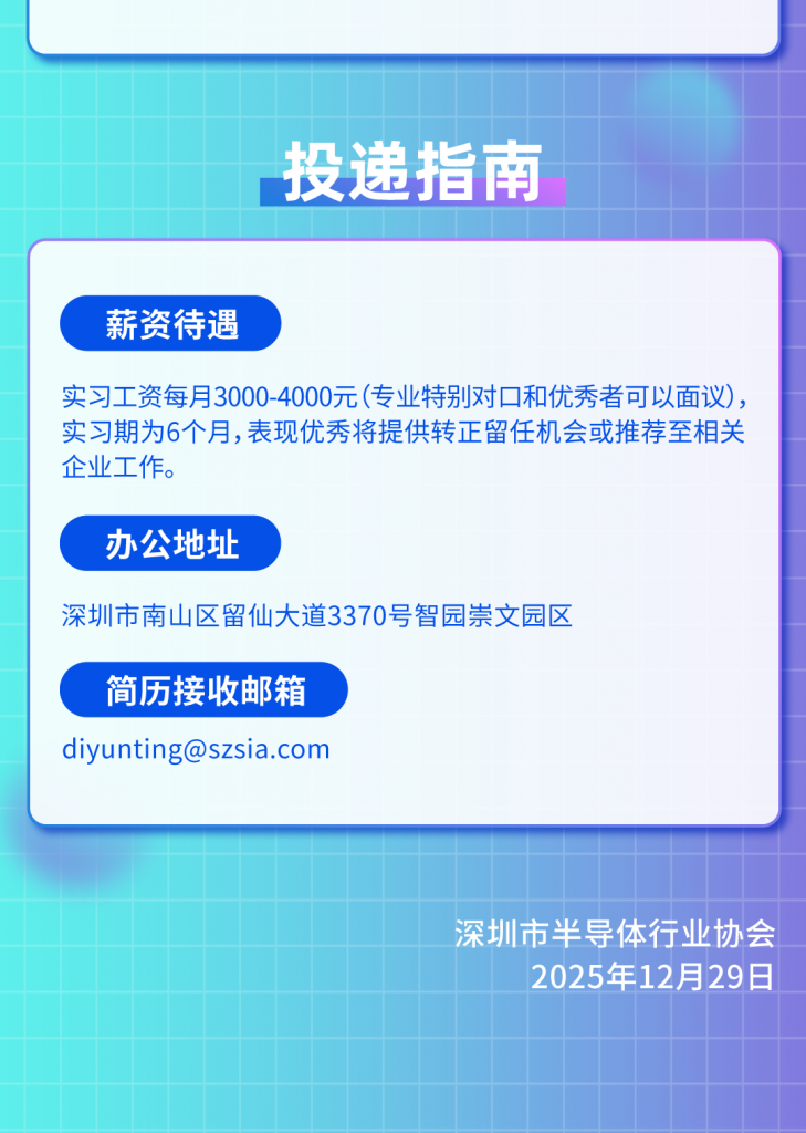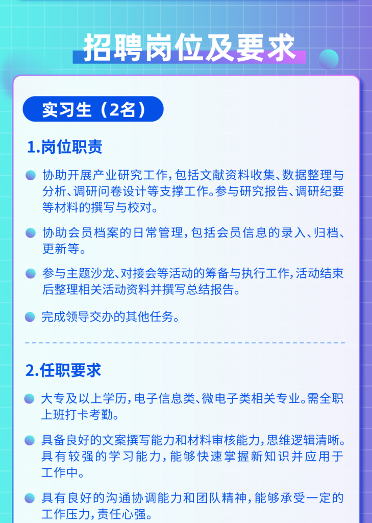 深圳市半导体行业协会招聘实习生2名