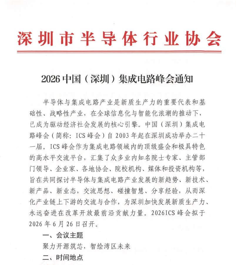 ICS峰会通知 | 2026中国(深圳)集成电路峰会通知
